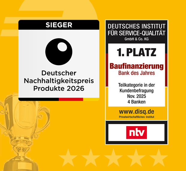 Finanzierung von erstrangigen Baudarlehen bis maximal 80% des Beleihungswertes, keine gewerblichen Objekte, zzgl. Kosten für die Bestellung einer Grundschuld, wie Notarkosten, Kosten der Sicherheitenbestellung (z. B. Kosten für das Grundbuchamt) sowie Gebäudeversicherung. Der Sollzins ist nicht bonitätsabhängig.