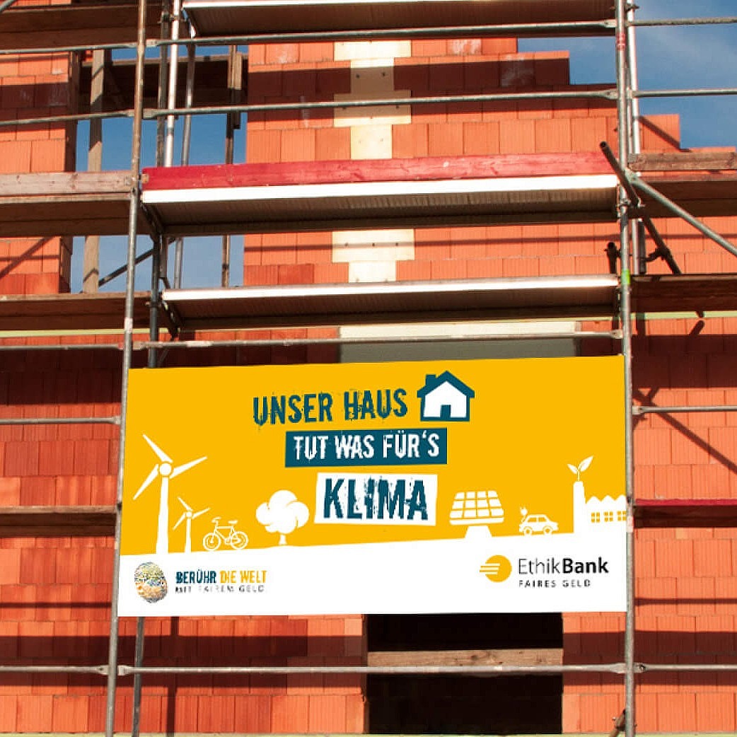 Unterstützt dich die EthikBank bei deinem Bauprojekt? Dann nimm an unserer exklusiven Aktion teil! So zeigst du nicht nur deiner Nachbarschaft klar und deutlich, dass dein Zuhause einen Beitrag für eine nachhaltige Zukunft leistet, sondern kannst dir auch ein attraktives Dankeschön sichern.