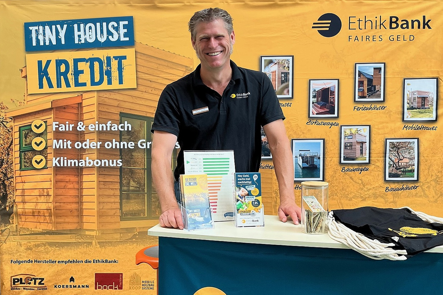 Das gilt selbstverständlich auch für andere alternative Wohnformen wie Mobile Homes. Da wir bei der EthikBank gemäß unserer strikten Anlagekriterien bei der Kreditvergabe auf ökologisch und sozial sinnvolle Maßnahmen achten, helfen wir Ihnen gerne bei Ihrem Tiny House Kauf – oder bei der Modulhaus Finanzierung sowie anderen alternativen Wohnformen.